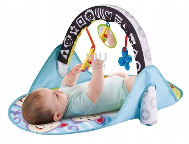 Dziecko sięgając po zabawki wzmacnia mięśnie, ćwiczy prawidłowy chwyt oraz poprawia zdolność utrzymywania główki w określonej pozycji.