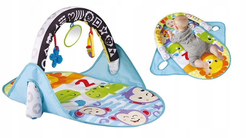 Wielofunkcyjna mata edukacyjna Kinder_Play zapewni mnóstwo wspaniałej zabawy oraz pomoże w rozwoju zmysłów, koordynacji ruchowej i zdolności manualnych Twojego dziecka. Dzięki możliwości odpięcia pałąka mata sprawdzi się doskonale na różnych etapach rozwoju dziecka. Soczyste barwy i wesołe nadruki ze zwierzątkami z zielonego lasu przyciągają wzrok i wzbudzają ciekawość malucha, dzięki czemu szybko staną się ulubionym miejscem do pierwszych zabaw i ćwiczeń.