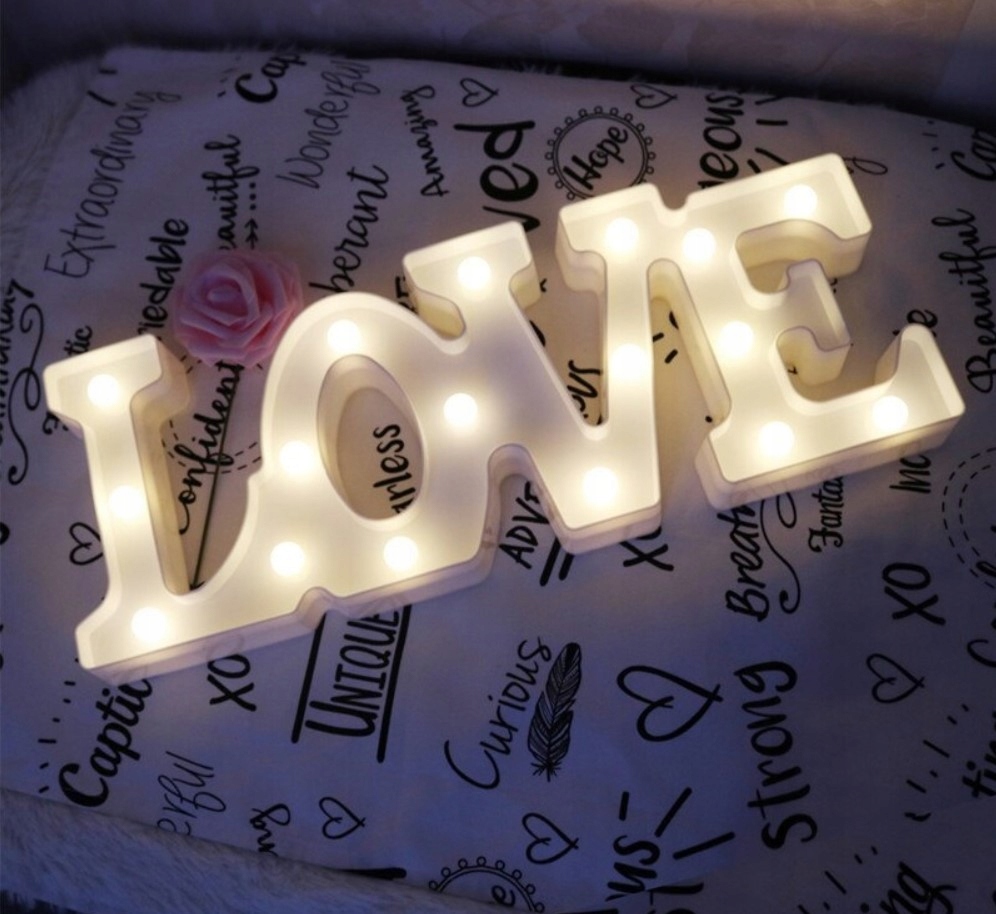 Ночник СВЕТОДИОДНЫЙ на батарейках Надписью LOVE Белый