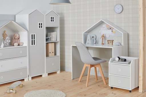 Дитячі меблі MIRUM доступні в трьох пастельних кольорах: сірому, м'ятному та рожевому в поєднанні з білим, що надає гармонію.