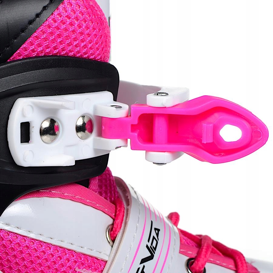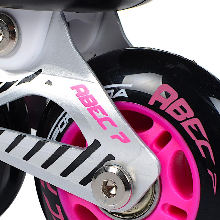 Łyżworolki o bardzo dobrych parametrach technicznych: płoza aluminiowa, łożyska ABEC-7 Carbon oraz kauczukowe koła PU zapewniają długotrwałe użytkowanie oraz wysoki komfort podczas jazdy. Łyżworolki posiadają 4-stopniowy system regulacji rozmiaru buta, dzięki czemu model ten będzie "rosnąć" razem ze stopą dziecka. Regulacja rozmiaru pozwala dopasować model do zmieniających się potrzeb rosnących juniorów, model jest idealnie dopasowany także do dorosłych użytkowników.