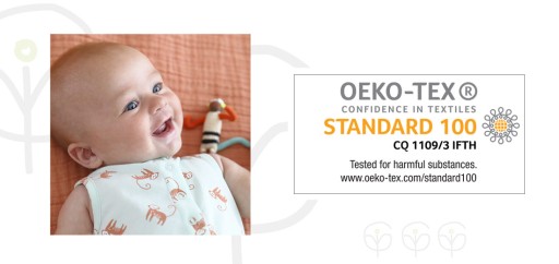 Для виробництва наших коконів ми використовуємо бавовняні тканини та наповнювачі, сертифікованіOeko-Tex Standard 100, що підтверджує безпеку текстильних виробів. Завдяки цьому ми впевнені, що їх можна використовувати з перших тижнів життя малюка.