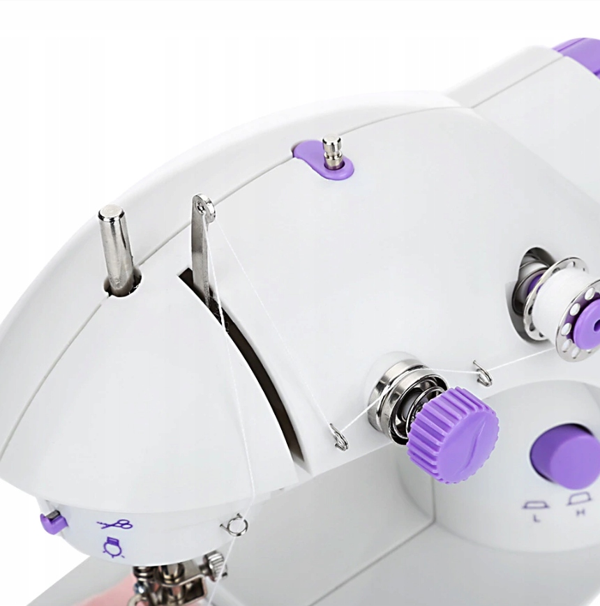 Bardzo lekka oraz poręczna mini maszyna do szycia. Urządzenie obsługiwane jest za pomocą pedała, jak w większej maszynie lub przyciskiem na obudowie. Doskonała dla początkujących jak i bardziej doświadczonych entuzjastów krawiectwa. Dołączony zestaw akcesoriów pozwala zacząć pracę