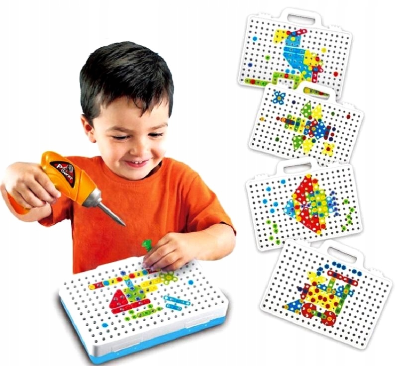 Panel zaskoczy Cię swoją wszechstronnością i jakością. Wszystkie części wykonane są z trwałego, wysokiej jakości i bezpiecznego tworzywa sztucznego. Twórczy mozaikowy projektant mozaiki pomaga rozwijać ruchliwość dłoni, wyobraźnię i postrzeganie kolorów u dziecka. Zestaw zawiera płyty, różne części, śruby, śrubokręt. Do przechowywania jest wygodne pudełko z pokrywką, którego jedna strona stanowi podstawę do montażu mozaiki.