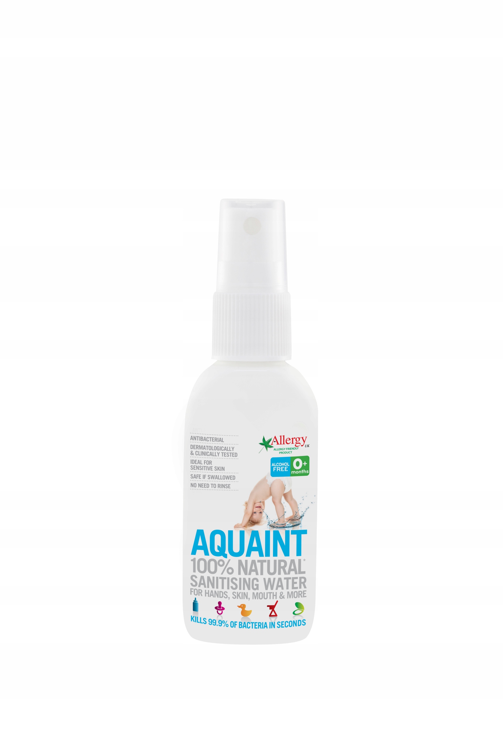 - Woda jest bezpieczna w wypadku połknięcia, idealna do butelek, smoczków, zabawek, toalety i dezynfekcji jedzenia. Wody nie trzeba ścierać i spłukiwać.