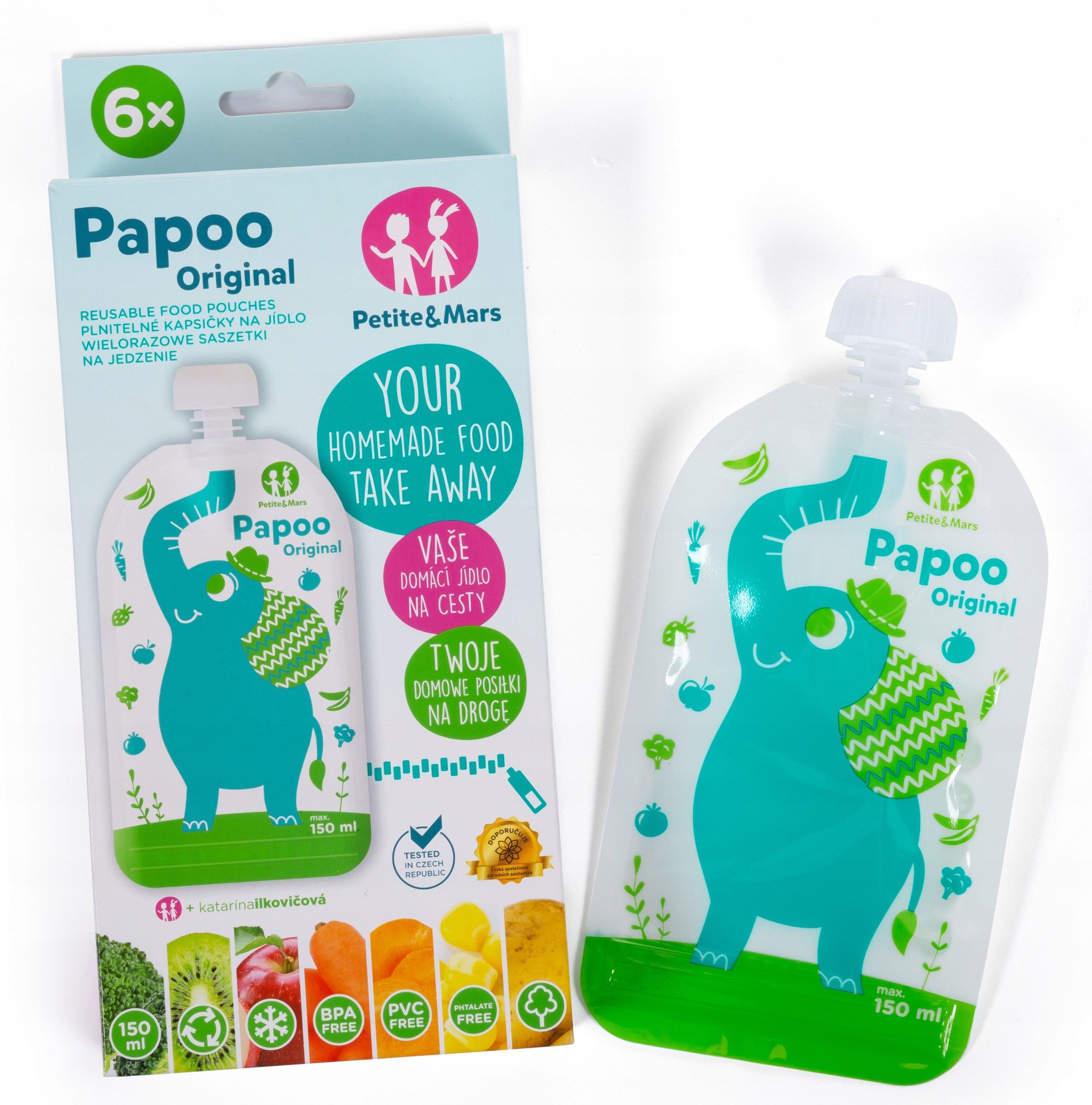 wielorazowe saszetki na pokarm - 6szt "SŁOŃ" + woda AQUAINT 50ml GRATIS