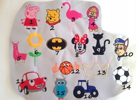 Duży wybór grafiki, która ułatwi dziecku rozpoznanie swojego ręczniczka (umieszczona pod imieniem dziecka)