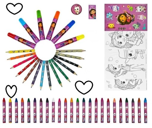 Чудовий набір кольорових олівців і фломастерів із мотивом лялькового будиночка Габбі.