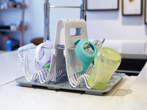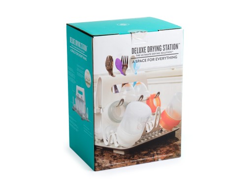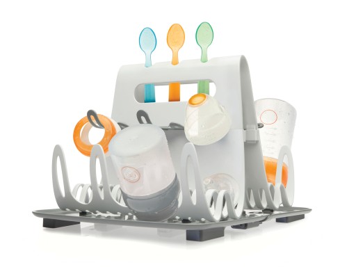 Містка та естетично виконана сушарка. Завдяки сучасному дизайну він підходить для будь-якої кухні. У нього можна помістити до 16 пляшок, а також дрібніші предмети, наприклад соски, кришки, чайні ложки.