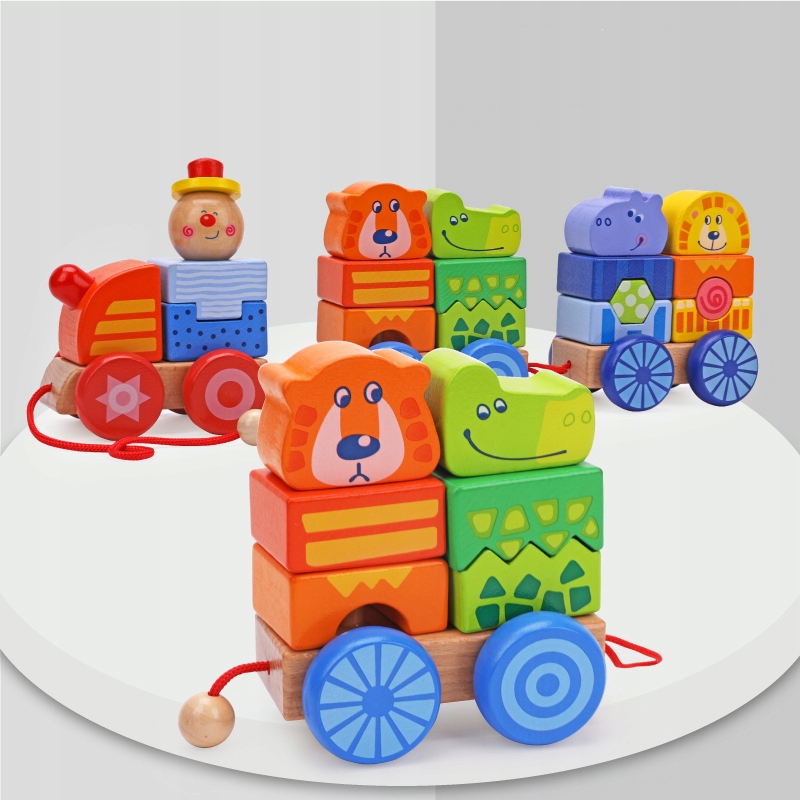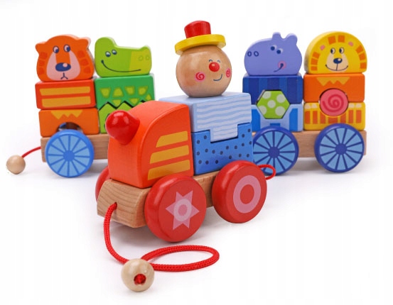Pociąg składa się z ciuchci i 2 wagonów, które można komponować w dowolny sposób. Dzięki sznureczkowi zabawkę w łatwy i przyjemny sposób można przenieść do innego pokoju.