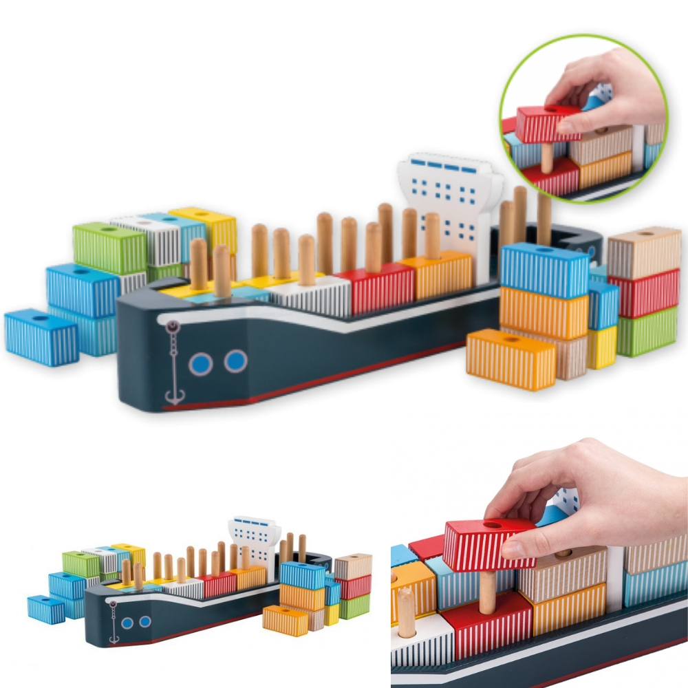 ДЕРЕВЯННЫЙ КОРАБЛЬ, КОНТЕЙНЕРОВОЗ 34 ЭЛЕМЕНТЫ JOUECO