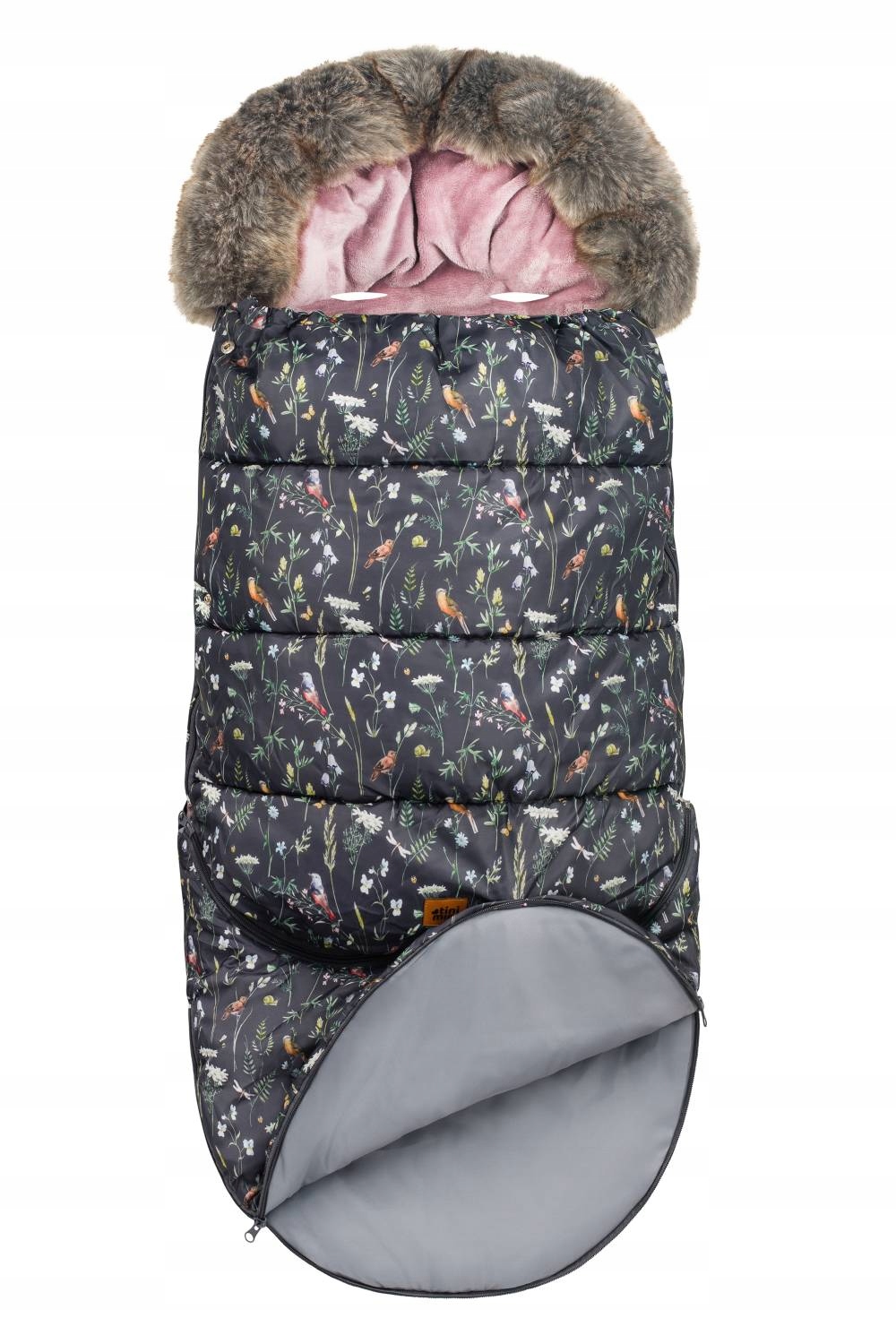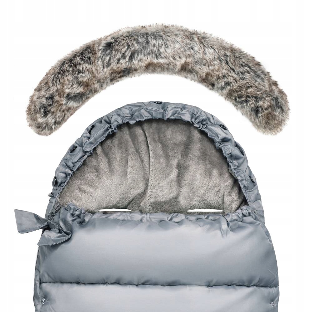Kształt śpiworka został zaprojektowany tak, aby pasował do większości dziecięcych wózków i zapewniał swobodę ruchów. Duży kapturek wykończony jest sztucznym futerkiem. Poprawia komfort cieplny i sprawia, że śpiworek jest jeszcze bardziej przytulny. W razie potrzeby futerko można całkowicie odpiąć.