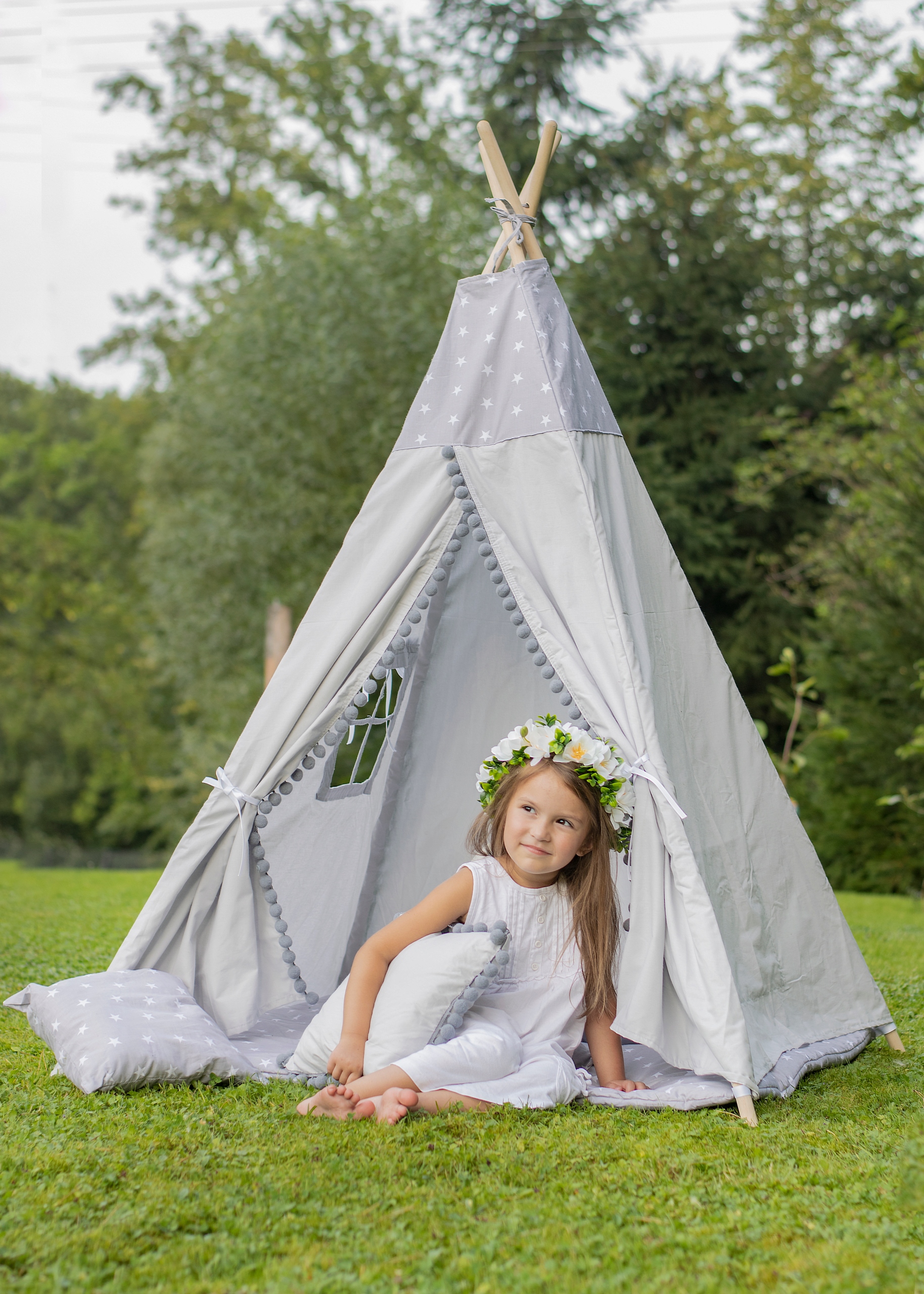 Палатка для детей TIPI ПОМПОНОМ+СТАБИЛИЗАТОР СТОЙКИ