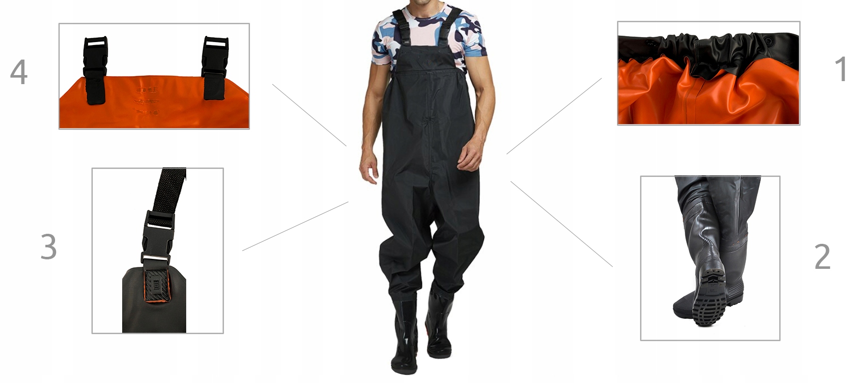 БОЛОТНЫЕ САПОГИ БРЮКИ РЫБАЦКИЕ САПОГИ + ПОДТЯЖКИ 44