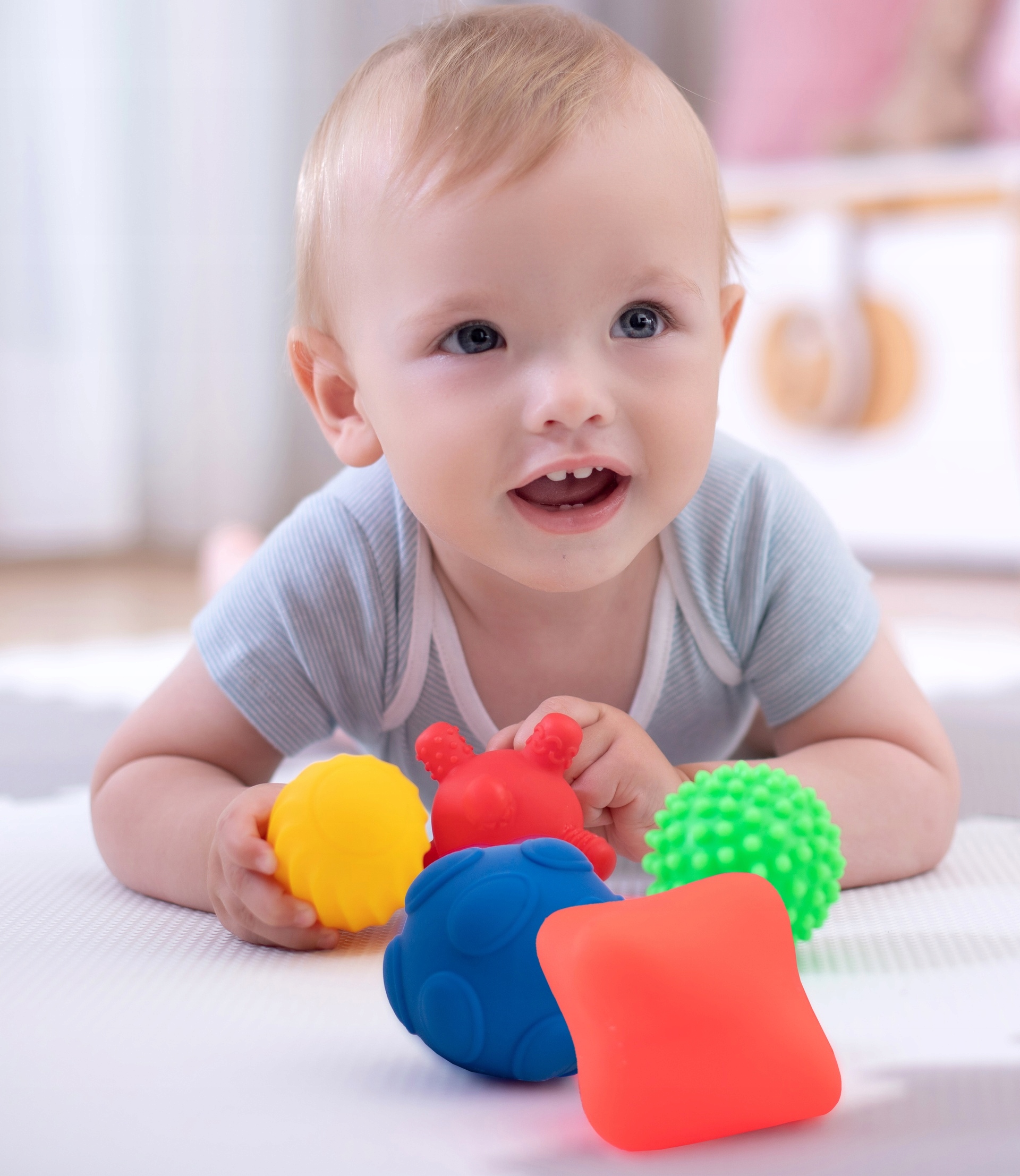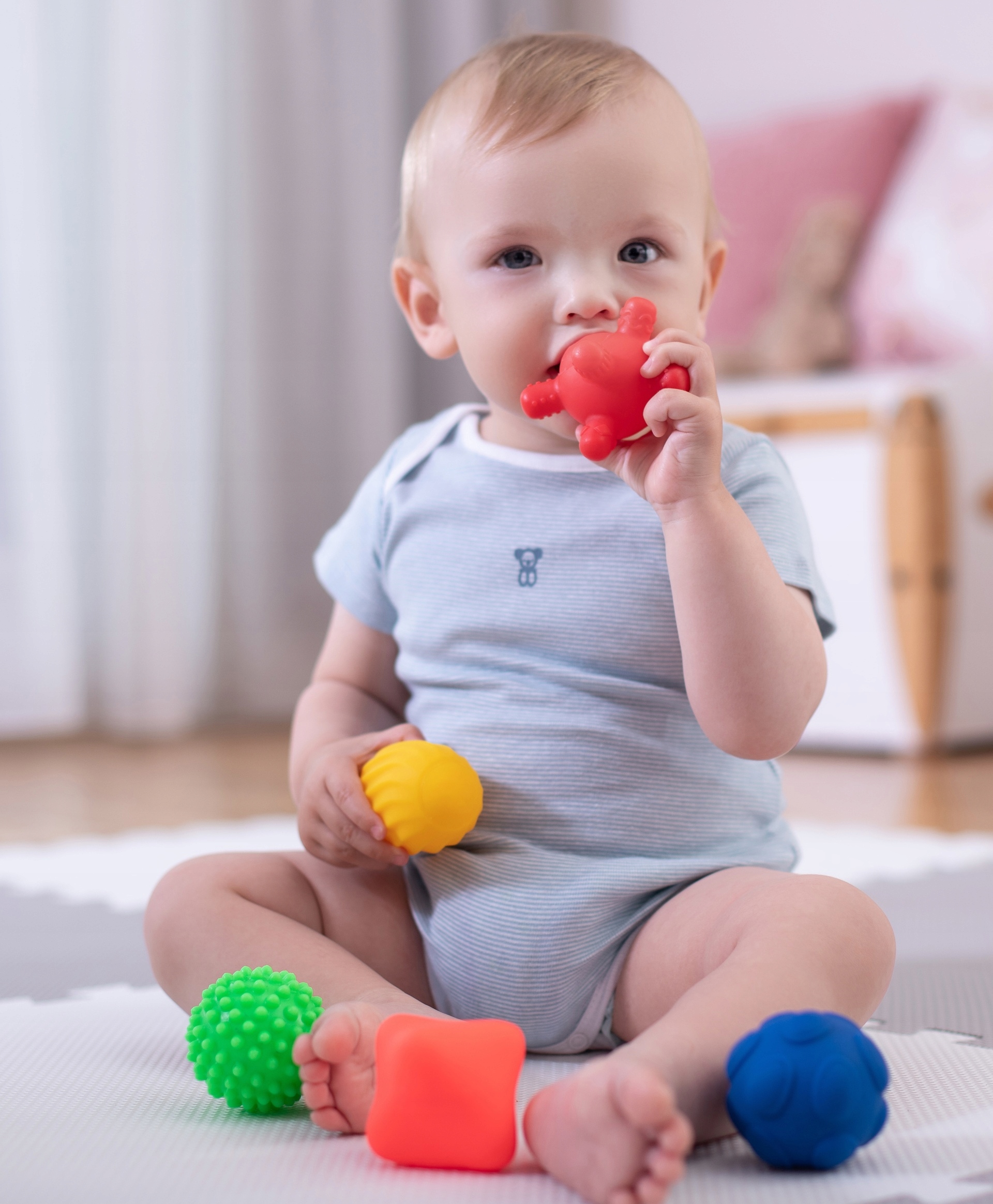 - sprawdzają się również w okresie ząbkowania, ponieważ faktury piłek masują dziąsła