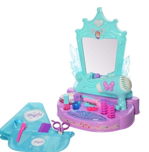 Що якби у вас був власний рожевий або блакитний і повністю обладнаний домашній салон краси? Наш набір відповідає мріям цих дівчат завдяки великому туалетному столику, який змусить серце кожного маленького комодера битися швидше. Що не менш важливо, набір абсолютно безпечний для дитячої шкіри, оскільки не містить косметики. Він лише прикидає їх, що дозволяє дитині повною мірою використовувати свою уяву.