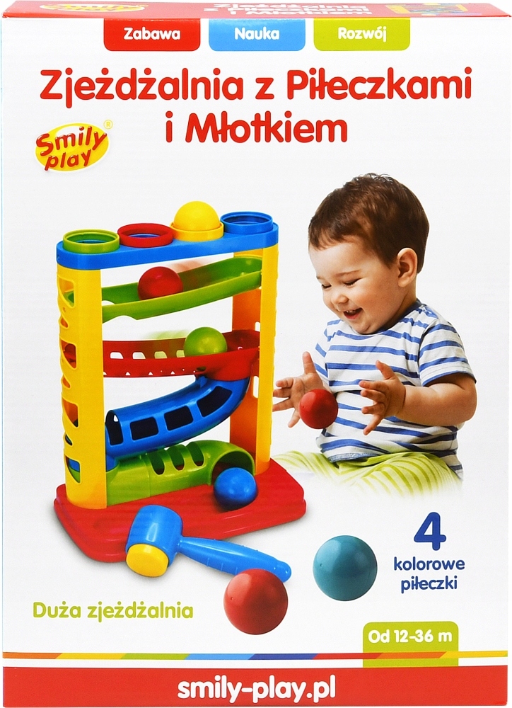 Sensoryczna zjeżdżalnia z piłeczkami i młotkiem od Smily Play.