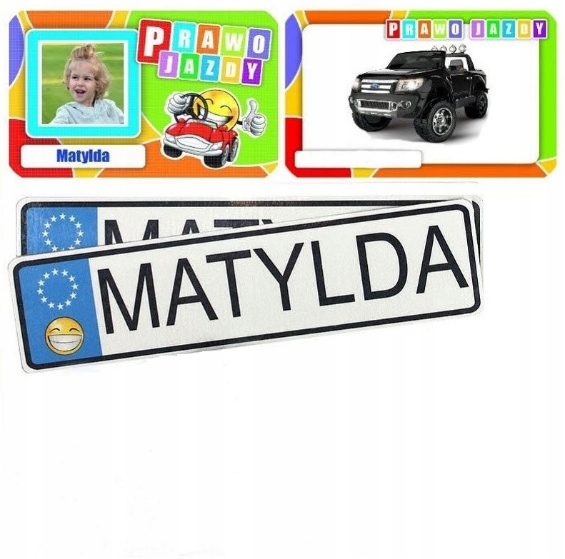 - Dodatkowo otrzymasz również dwie naklejki stylizowane na tablice rejestracyjne, oczywiście z imieniem Twojego Dziecka.