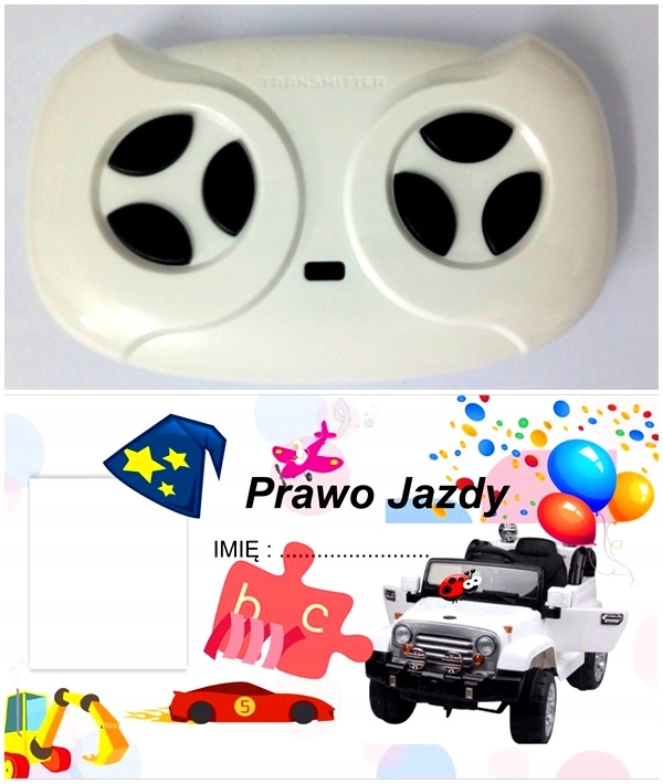 - zdalnie sterowany za pomocą pilota, jak również dziecko może jeździć samodzielnie przy użyciu kierownicy i pedału gazu
