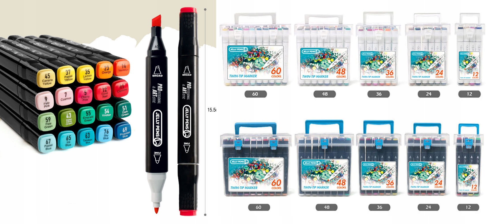 PROMARKERY ALKOHOLOWE dwustronne - ZESTAW 80szt. + ETUI z uchwytem