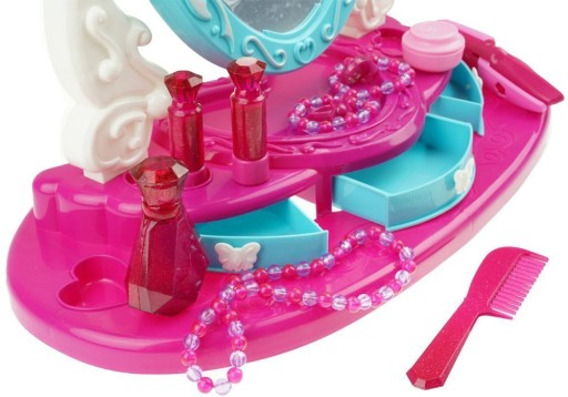Туалетний столик з дзеркалом і підсвічуванням заохотить багатьох маленьких принцес пограти в перукаря. Казковий туалетний столик має всі необхідні аксесуари, щоб «зробити себе схожим на бога». Щоб маленька принцеса могла наслідувати маму чи сестричку та навчитися робити гарну зачіску.