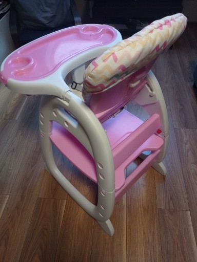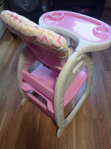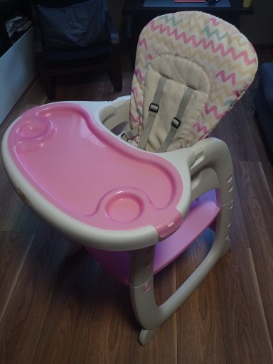 Дитячий стільчик для годування з ременями 3 в 1, можливість зняти верх і додати стільчик до столу, а також від'єднати нижню частину стільчика, яка буде служити столиком для дитини.