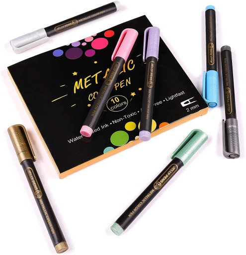 Маркери містять дуже якісні бавовняні серцевини, змочені нетоксичними чорнилами на водній основі, що дозволяє малювати на папері, склі, дереві, металі, тканині та кераміці. Вони мають мерехтливі металеві кольори з ефектом блиску та легкого блиску. Включені кольори: золото, срібло, білий, чорний, світло-зелений, зелений, синій, іржаво-рожевий, фіолетовий і коричневий.