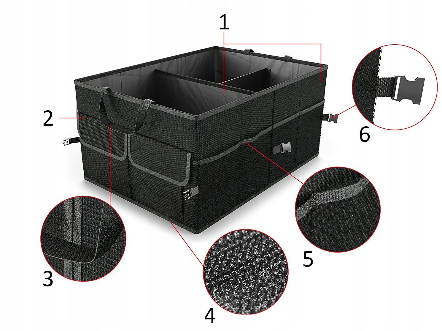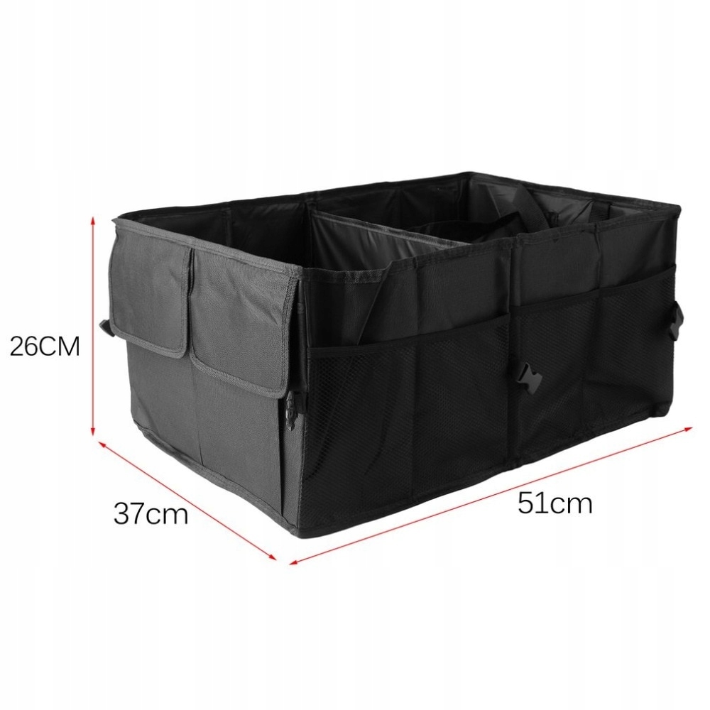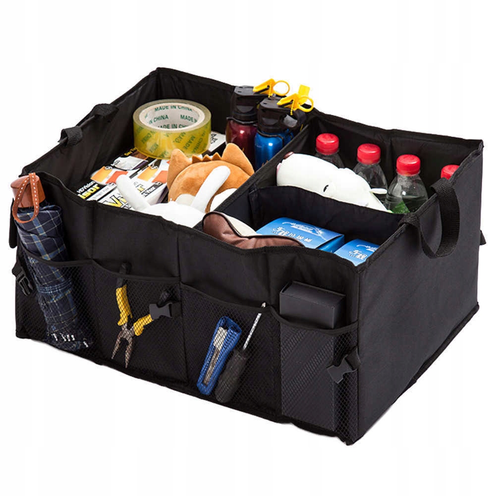 Zawsze gdy otwierasz bagażnik samochodu nie możesz nic znaleźć. Każda rzecz w nim zamieszczona zmienia swoje położenie w czasie jazdy? Mamy na to rozwiązanie! Praktyczny, duży organizer samochodowy. Gdzie położysz daną rzecz, ona tam cały czas będzie. Organizer zabezpiecza oraz porządkuje rzeczy znajdujące się w Twoim samochodowym bagażniku. Idealnie sprawdzi się do przechowywania rzeczy tj. przedmioty samochodowe, napoje, zakupy, zabawki itp. Organizer możesz rozłożyć tylko wtedy kiedy jest Ci potrzebny a po zakończeniu korzystania złożyć go do niewielkich rozmiarów tak aby zajmował jak najmniej miejsca.