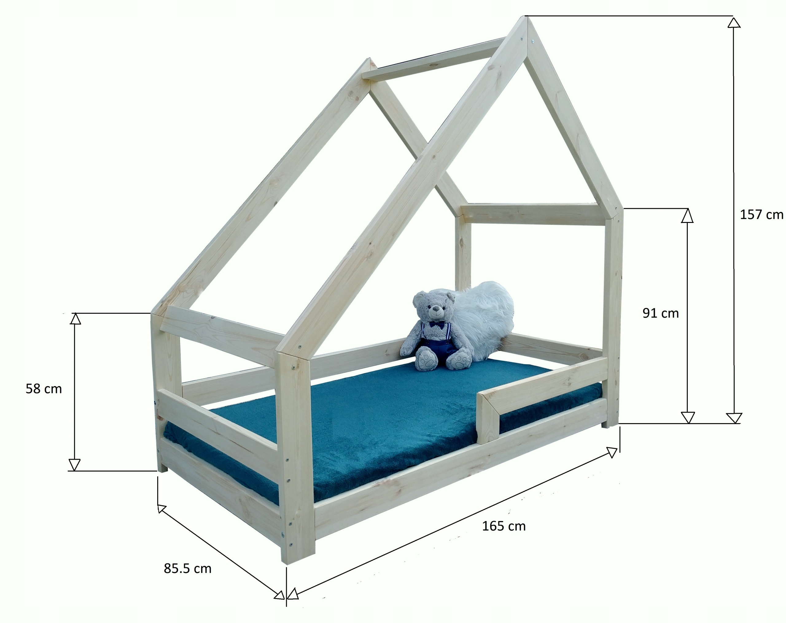 Детская кровать ДОМИК 160x80 Перила + МАТРАС