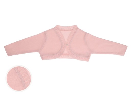 Красивий, елегантний светр-болеро з оборкою, що застібається на гудзик - перлина, виготовлений з трикотажу, ідеальний для Хрещення та інших свят.