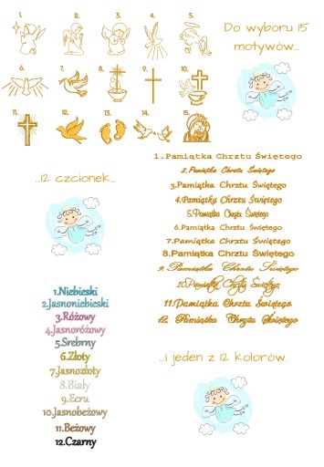Приклад: Тема одягу 7, шрифт 4, домінуючий колір 6, колір імені 4, імена Ола Аня, дата хрещення 25/07/2021