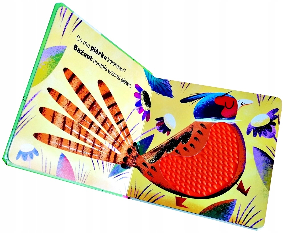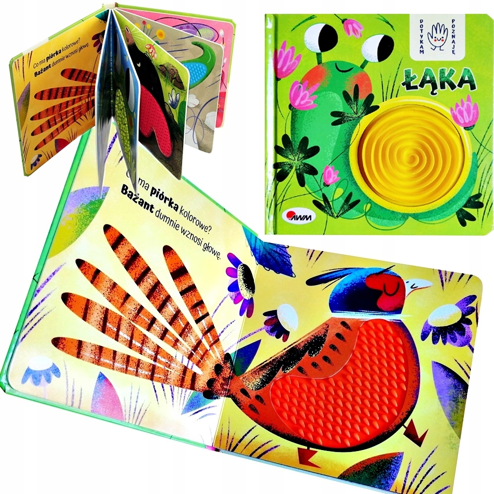 - Urocza książeczka dla CIEKAWYCH ŚWIATA malców. Dzięki wypukłym formom o różnych fakturach dziecko może POGŁASKAĆ łąkowe zwierzątka. Z pewnością chętnie sprawdzi, jakie w DOTYKU są PIÓRKA BAŻANTA czy BRZUSZEK ŻABKI.