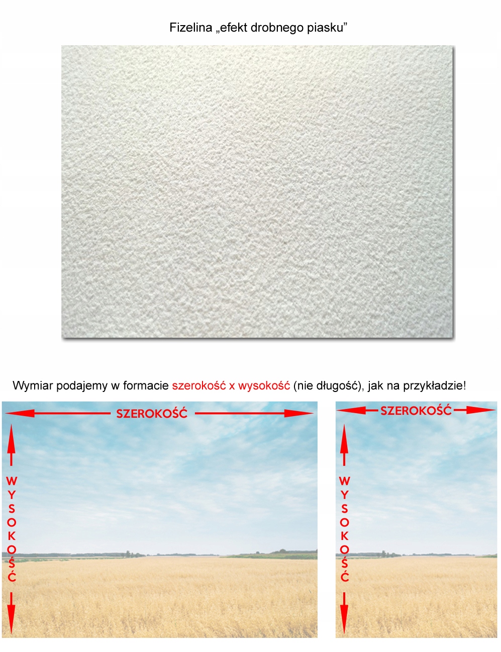 - Tapety drukujemy na najlepszych jakościowo, grubych materiałach z grupy tapet winylowych, na podłożu fizelinowym. Materiał o strukturze "drobnego piasku". Umożliwia uzyskanie realistycznej jakości druku, żywych i nasyconych kolorów, pochłania światło dzięki czemu nie tworzą się refleksy świetlne.