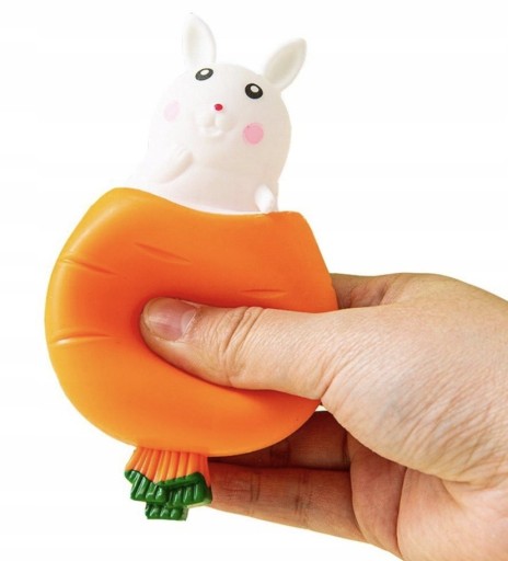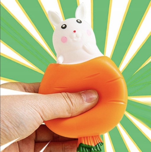 Вам потрібен спосіб ЗМЕНШИТИ СТРЕС? Наш чарівний SQUISHY GNIOTEK: КРОЛИК СТРИБАЄ З МОРКВИ – ідеальне рішення. Ви можете натискати та формувати його як завгодно, що приносить полегшення та РОЗКЛАСЕННЯ. Це засіб, який допомагає зняти стрес, зменшити тривожність і збільшити терпіння. Крім того, ідеально підходить для тренування пальців і різноманітних тактильних відчуттів.