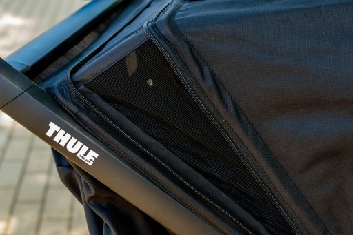 Thule Urban Glide 2 важить трохи більше 11 кг. Завдяки легкій конструкції з трьох частин має обтічну форму. Він оснащений двома гальмами (ручним і стоянковим), ременем на зап'ясті та іншими рішеннями для підвищення безпеки дитини. Його характерною рисою є дуже великі, широко розставлені задні колеса, діаметр яких не перевищує 40 см. Переднє колесо більш ніж на 10 см менше, його можна заблокувати. Така конструкція робить його дуже стабільним як під час ходьби, так і під час бігу.