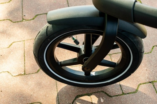 задні надувні великі 16-дюймові (менше 40 сантиметрів) колеса та менше (приблизно 28 сантиметрів) переднє колесо, яке можна заблокувати для пробіжки,