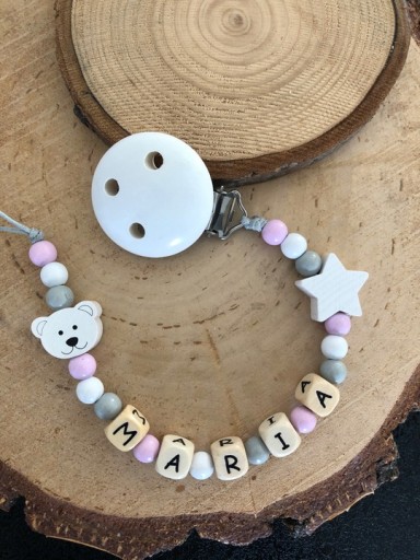 Дерев'яна персоналізована підвіска для пустушок і прорізувачів, ідеально підходить для дому і на прогулянці, не дозволить втратити соску, прорізувач і навіть маленького друга нашої дитини.