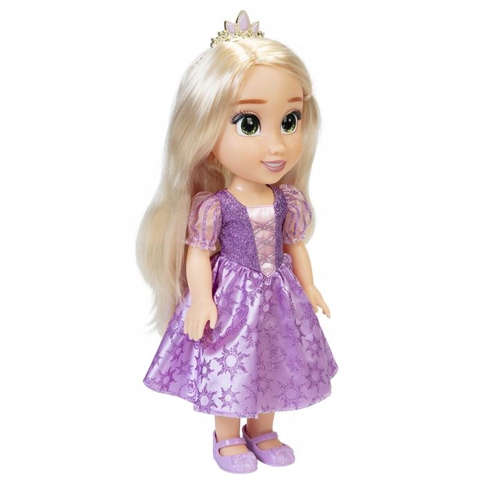 Lalka przedstawiająca księżniczkę Disneya została wykonana z wysokiej jakości materiałów. Producent zadbał o wierne odwzorowanie najistotniejszych szczegółów. Roszpunka posiada duże, zielone oczy. Jej głowę zdobią lśniące blond włosy, zdobione połyskującą tiarą. Ubrana jest w fioletową suknię udekorowaną brokatowymi zdobieniami. Na nogach ma również fioletowe buciku, które świetnie dopełniają cały strój. Zabawka posiada ruchome ręce oraz nogi.