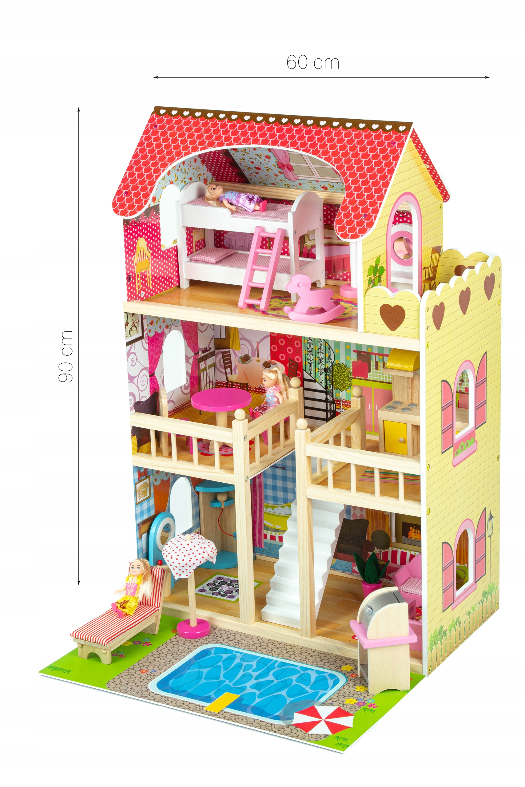 БОЛЬШОЙ ДЕРЕВЯННЫЙ ДОМИК ДЛЯ КУКОЛ, МЕБЕЛЬ+КУКЛЫ+БАССЕЙН