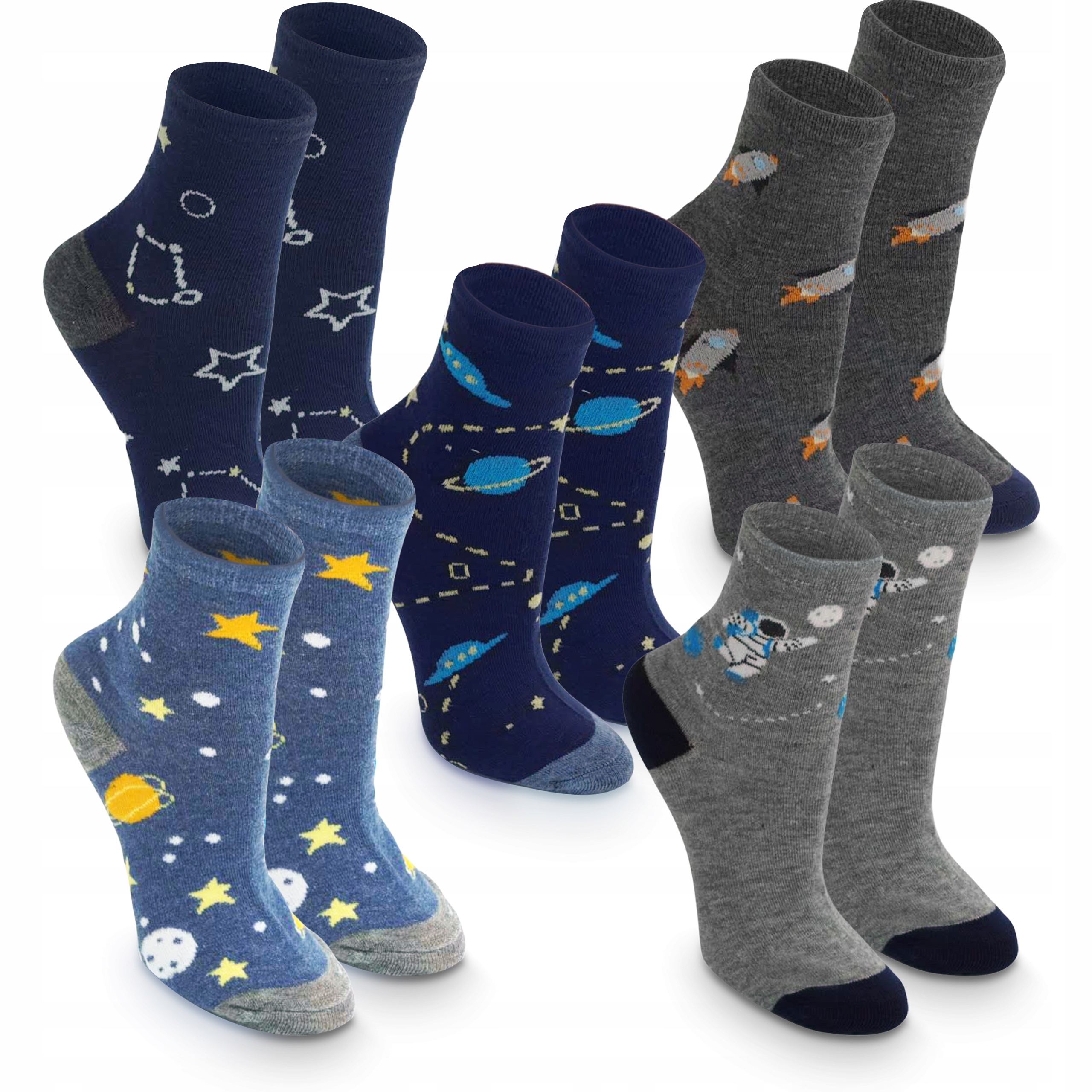 Zestaw 5-ciu par Skarpetek z motywem Kosmosu - Astronauci, Konstelacje Gwiazd i Rakieta.