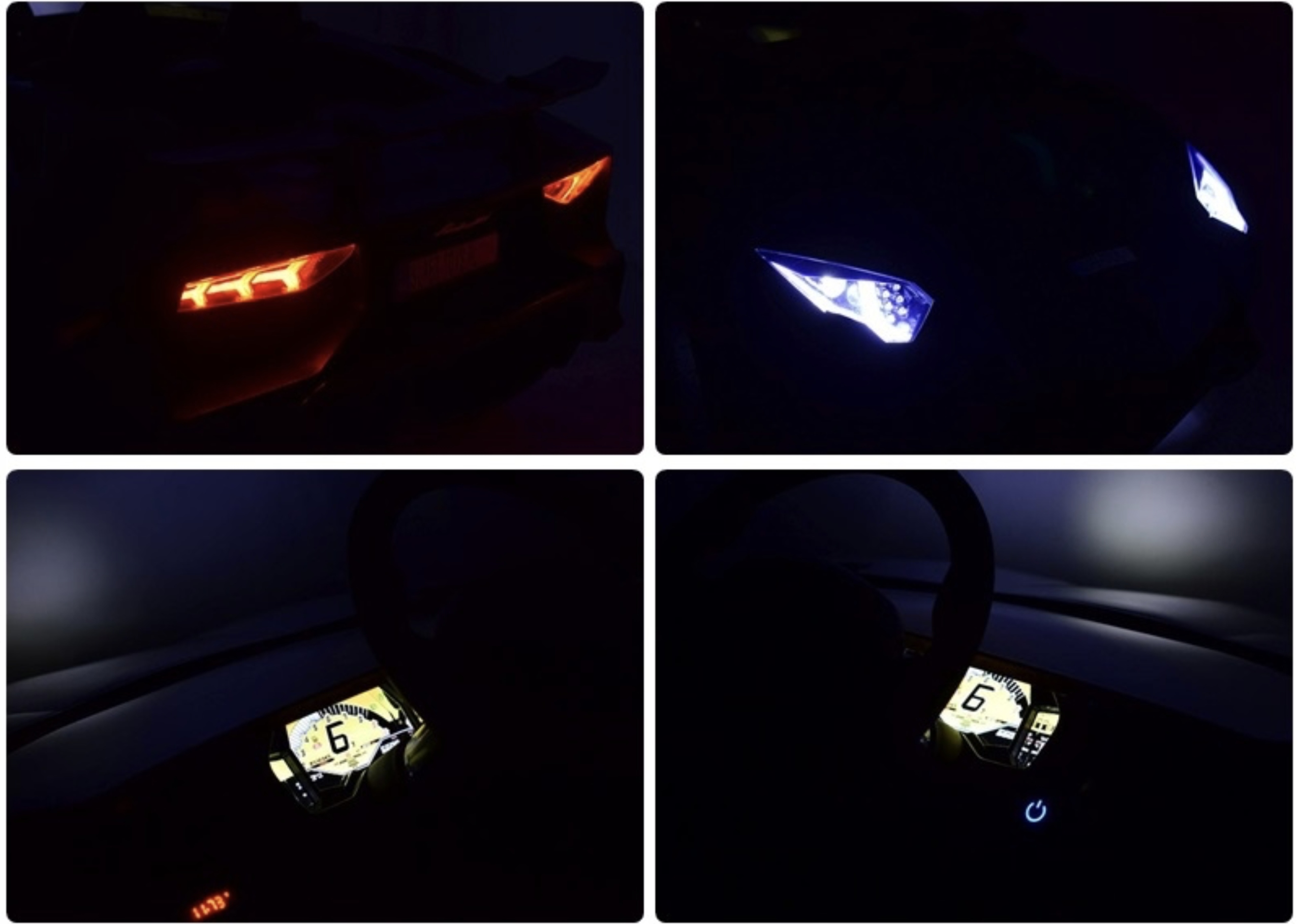 - auto posiada dźwięki - klakson oraz z odgłos uruchamiania pojazdu i pracy silnika bardzo realistyczne jak w LAMGORGHINI