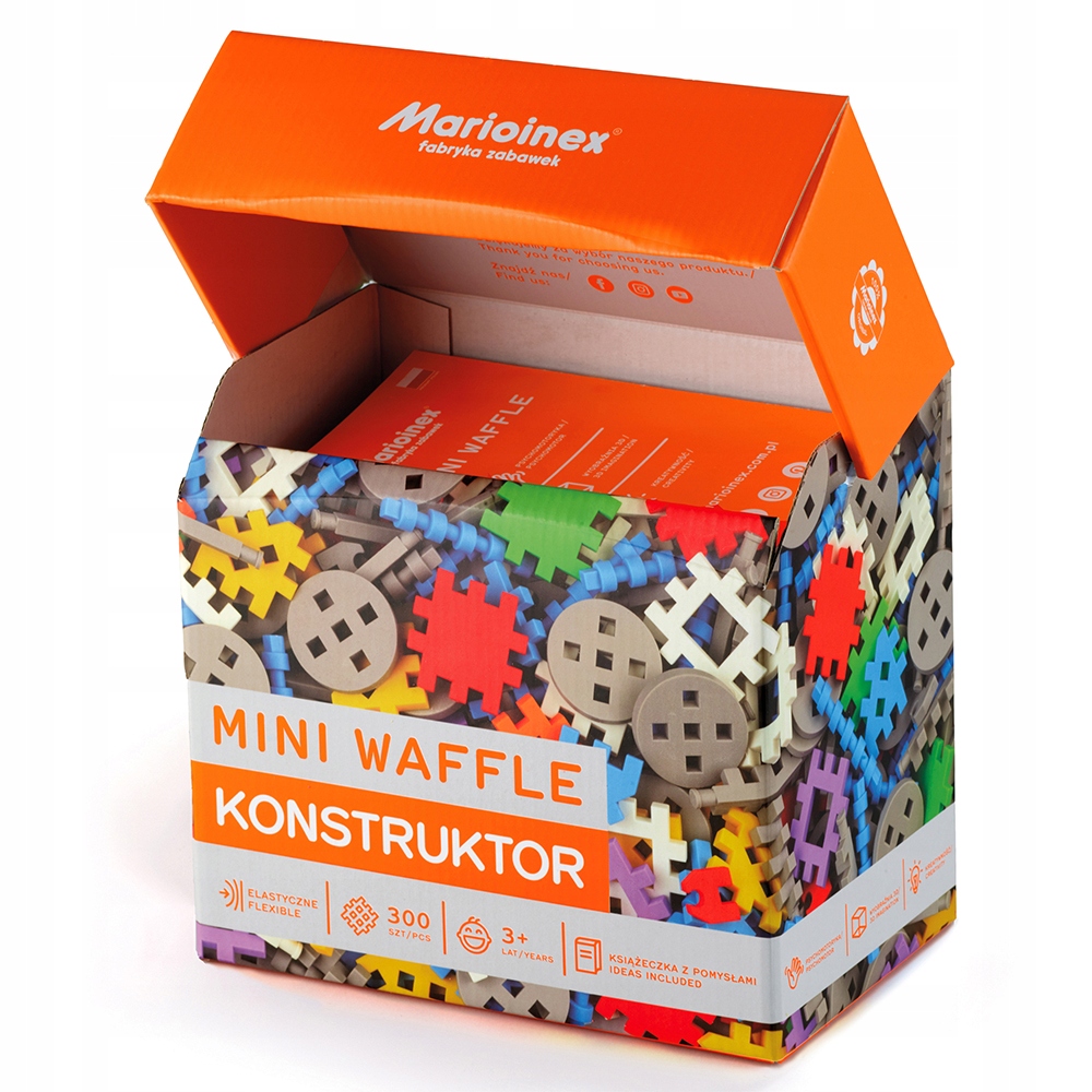 MINI WAFFLE to miękkie i nowatorskie klocki przypominające w dotyku gumę o kształcie wafla. Niewielki ich rozmiar daje znacznie większą mobilność oraz nowe możliwości. W ofercie oprócz klasycznych Mini Waffli można znaleźć także uzupełniające Klocki Konstruktor, które sprawiają, że Mini Waffle nabierają świeżego, technicznego charakteru, poszerzając przy tym możliwości twórcze.