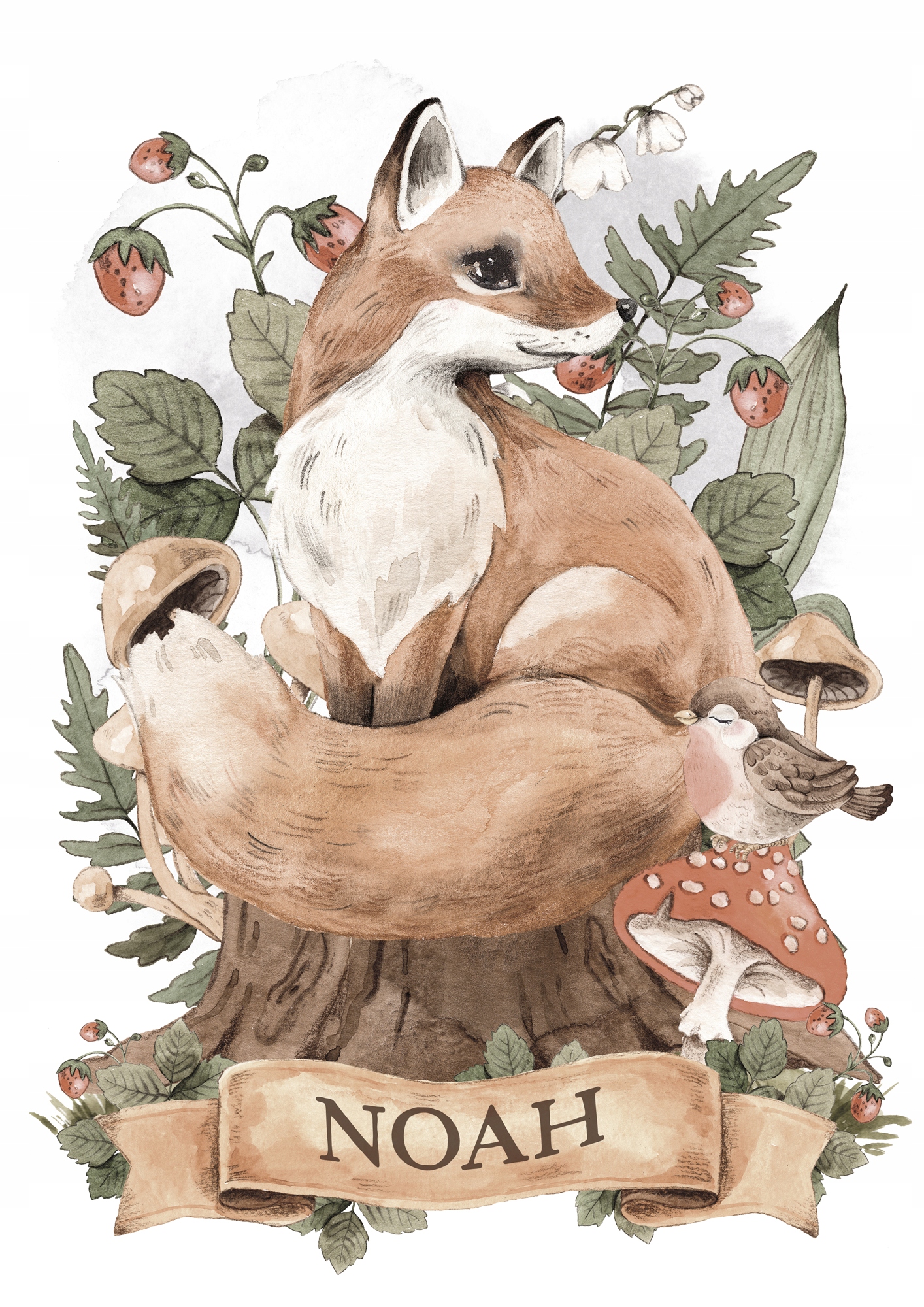 Plakat personalizowany z imieniem dziecka. Plakaty do serii leśnych naklejek i tapety BUDDIES