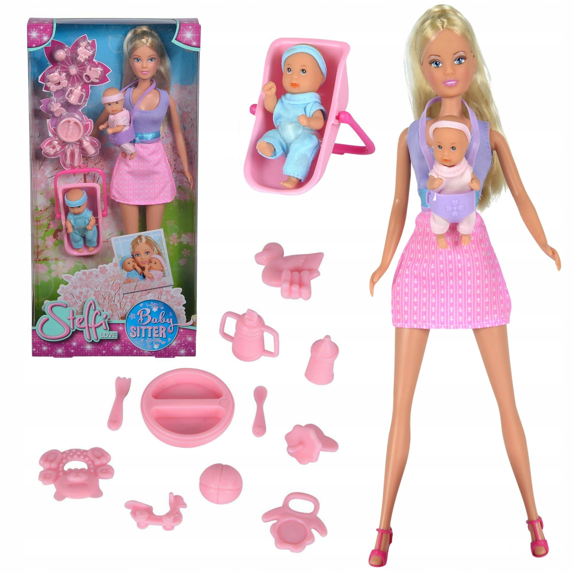 - w zestawie: lalka Steffi, lalka Kevin, bliźnięta, 2 nosidełka, akcesoria