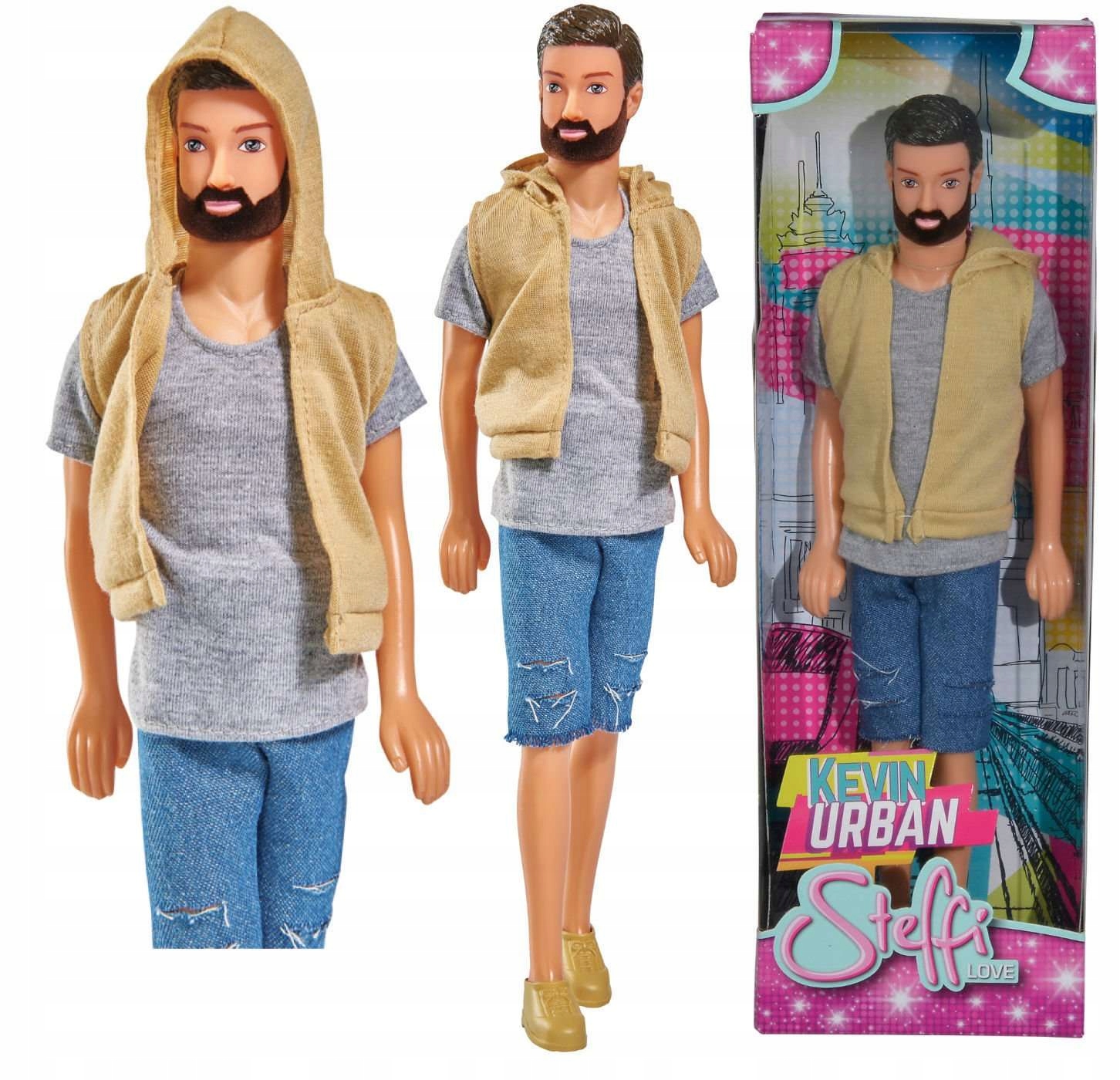 Ken Kevin Hipster ma brązowe oczy, ciemne włosy i brodę.