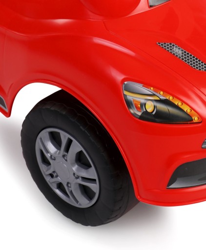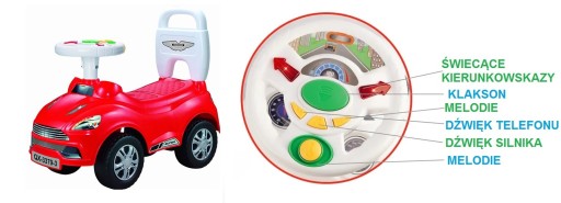 На іграшковій машині для прогулянок, штовхачів є наклейки, що імітують автомобільний годинник, а візерунок на сидінні імітує шкіряні сидіння.