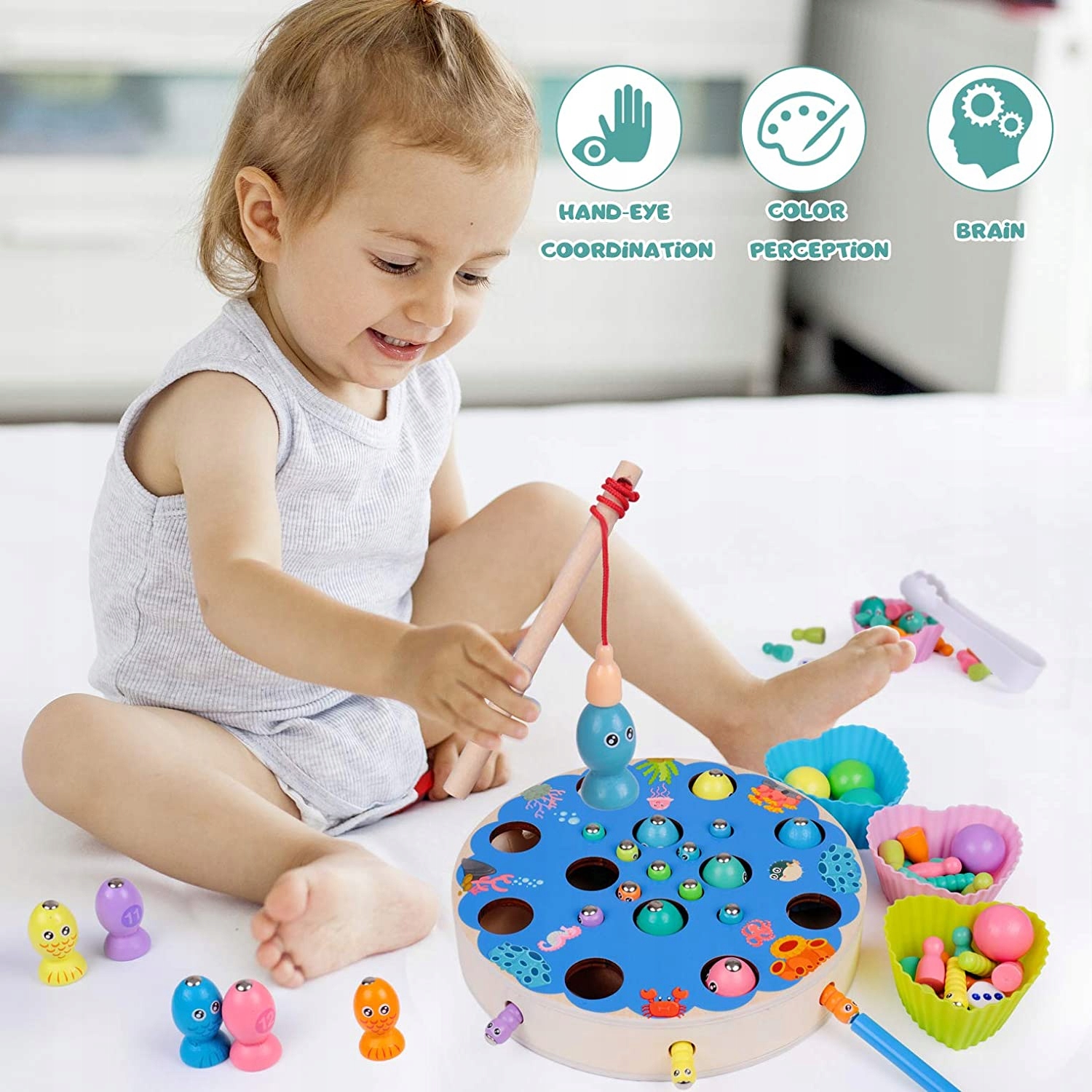 РЫБКИ ДЕРЕВЯННЫЕ ЦИФРЫ ЛОВЛЯ СОРТЕР МОНТЕССОРИ