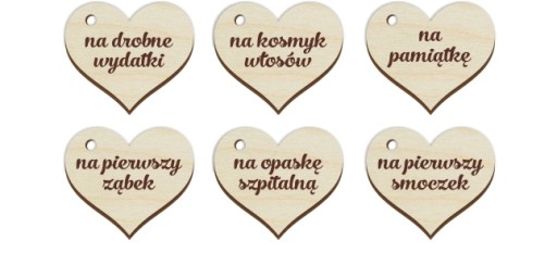 Від нас ви отримаєте 6 красивих фанерних сердечок з надрукованими гаслами: