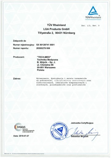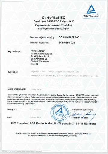 Інгалятори KARDIO-TEST MEDICAL зареєстровані як медичні вироби в УПРАВЛІННІ РЕЄСТРАЦІЇ ЛІКАРСЬКИХ ЗАСОБІВ, МЕДИЧНИХ ВИРОБІВ ТА БІОПРЕПАРАТІВ, що відповідає умовам положень, що містяться в Законі від 20 травня 2010 року про медичні вироби (Журнал Закони 2015 року).. пункт 876 із змінами).