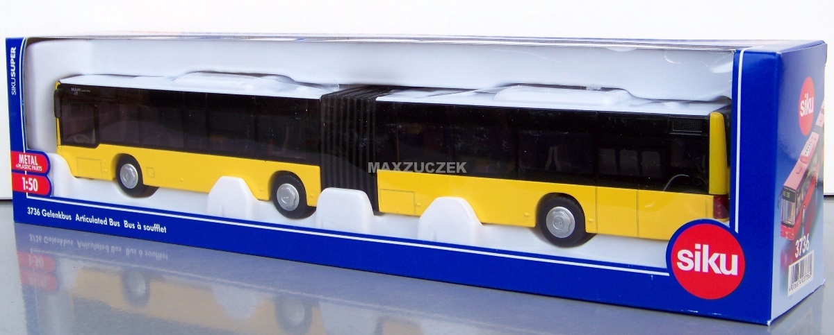 SIKU 3736 АВТОБУС СОЧЛЕНЕННЫЙ MAN ЖЕЛТЫЙ МЕТАЛЛ 1:50
